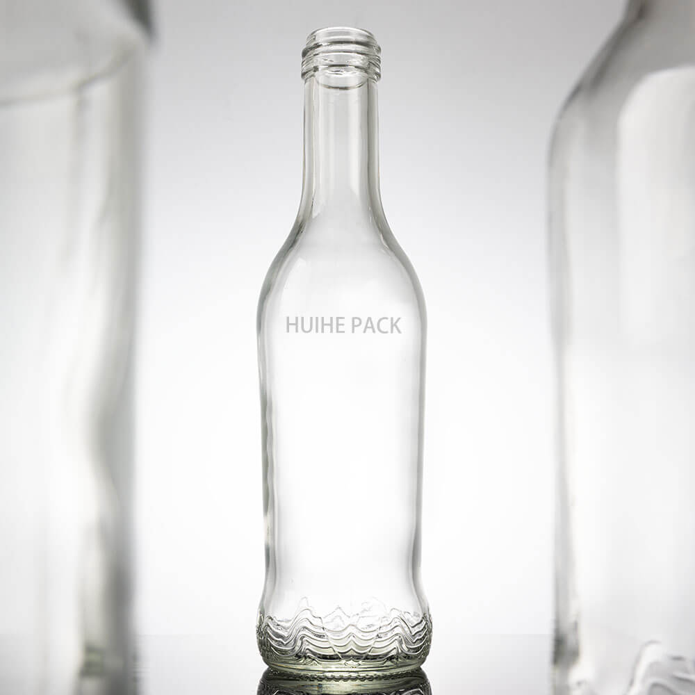 Diese Premium-Wasserflasche aus Glas hat ein Fassungsvermögen von 288 ml, ist 211 mm hoch und 52 mm breit. Es zeichnet sich durch eine elegante, schlanke Silhouette aus: Ein hoher, schmaler Hals geht sanft in einen sanft geschwungenen Körper über, der mit einer zarten, wellenförmigen Basis versehen ist, die einen subtilen Luxus-Touch verleiht. Sein kristallklares Glas unterstreicht die Reinheit des Inhalts und eignet sich perfekt für hochwertige Mineralwasser- und Premium-Getränkemarken.