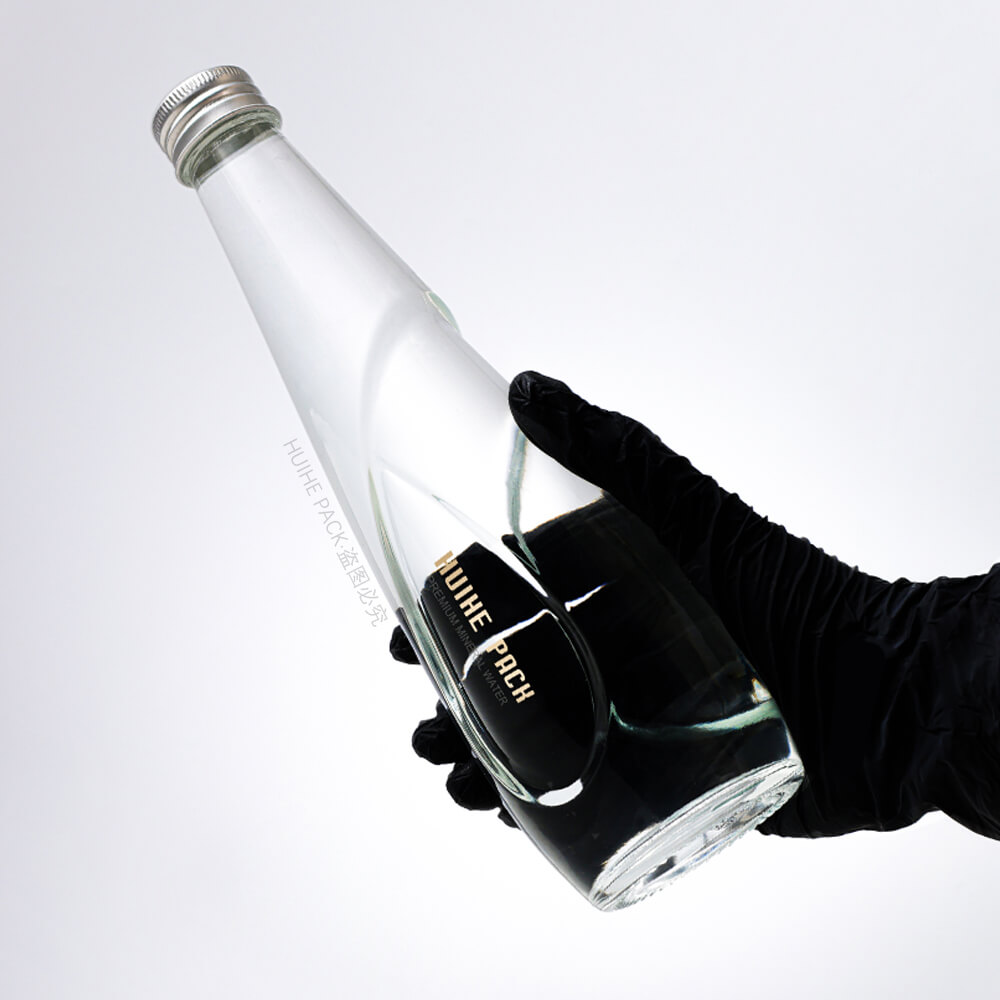 Diese 330-ml-Glaswasserflasche hat eine schlanke, sich verjüngende Form mit einem anmutig geschwungenen Detail am Körper: Sie ist 227 mm hoch und hat einen Bodendurchmesser von 66,4 mm. Das kristallklare Glas unterstreicht das elegante, fließende Design – ideal für hochwertige Mineralwassermarken, die ihrer Verpackung einen Hauch von Raffinesse verleihen möchten.