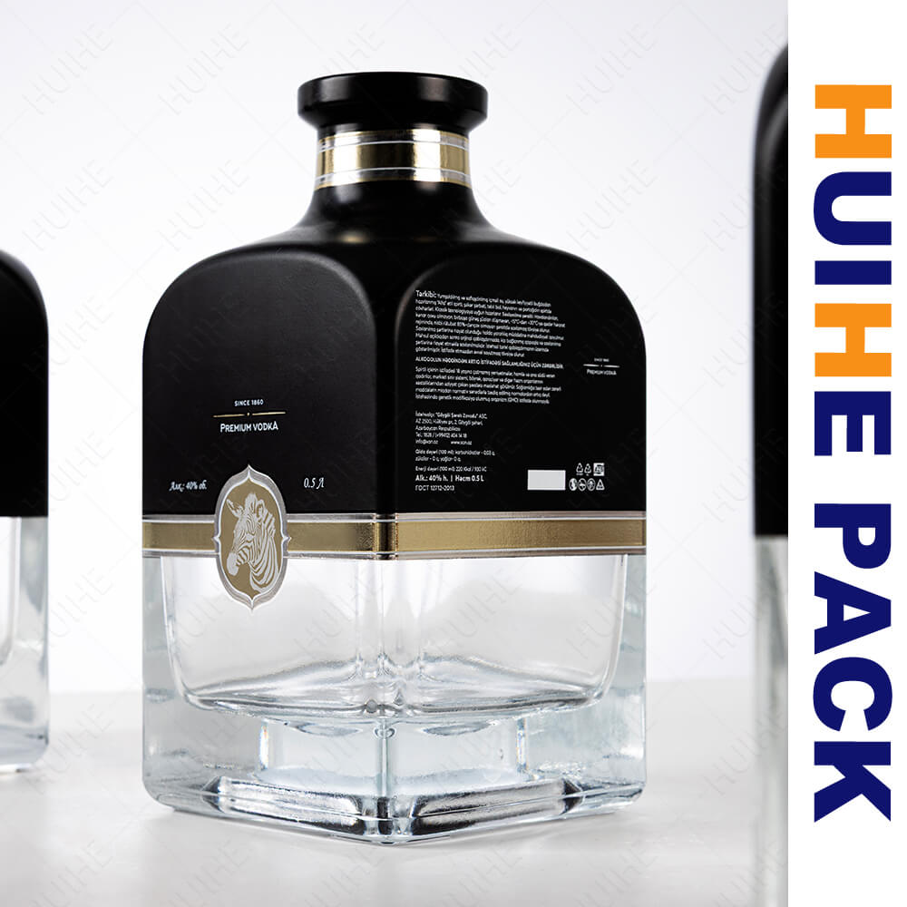 Diese 500-ml-Glasflasche für Spirituosen verfügt über eine schlanke, rechteckige Silhouette (156 mm hoch, 80 mm breit) mit einem auffälligen zweifarbigen Design: ein mattschwarzer oberer Teil gepaart mit einer transparenten unteren Hälfte, akzentuiert durch metallische Verzierungen für einen luxuriösen, modernen Look – ideal für Premium-Spirituosenmarken. Es ist aus hochwertigem Glas gefertigt und gewährleistet eine stabile Qualität: Jedes Gerät wird einer 100-prozentigen Inspektion unterzogen, um Bruchrisiken auszuschließen, und seine luftdichte Versiegelung garantiert eine leckagefreie Leistung.