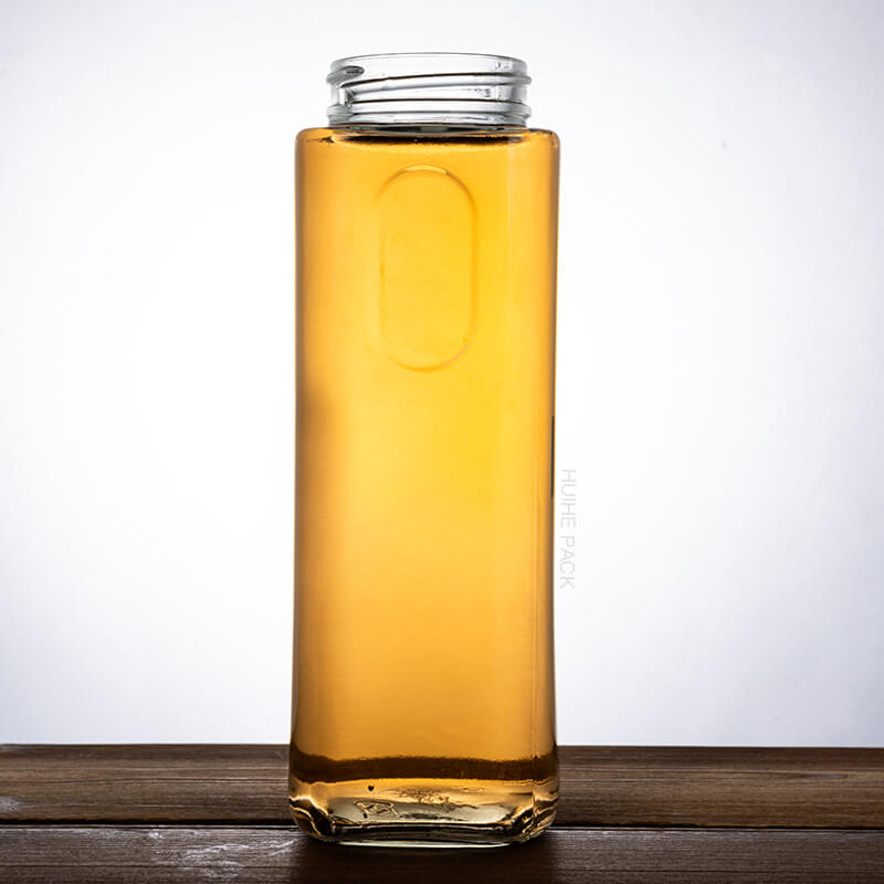 Sein schlankes, rechteckiges Design bietet nicht nur hervorragende Klarheit, um die Farbe und Textur Ihres Getränks hervorzuheben und so die Attraktivität im Regal zu verbessern, sondern bietet auch strukturelle Stabilität für sicheren Transport und Lagerung. Diese Flasche eignet sich für eine Vielzahl von Getränken, von stillem Wasser und Eistee bis hin zu Säften und Spezialgetränken, und ist so konzipiert, dass sie den unterschiedlichen Branding-Anforderungen gerecht wird. Es unterstützt Anpassungsoptionen, einschließlich kompatibler Kappen und Logodruck, sodass Sie die Verpackung nahtlos an Ihre Markenidentität anpassen können.
