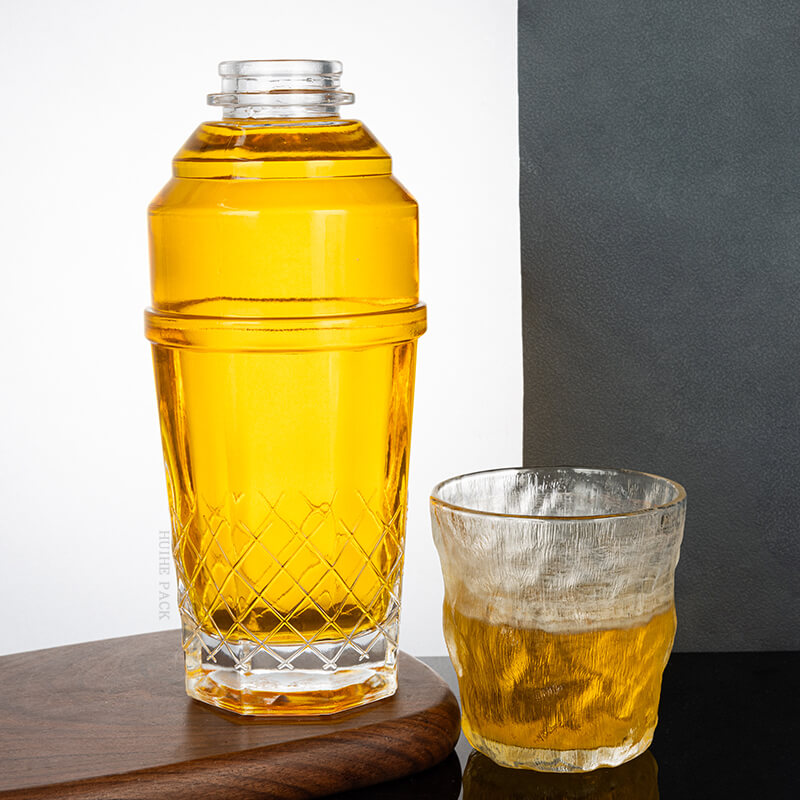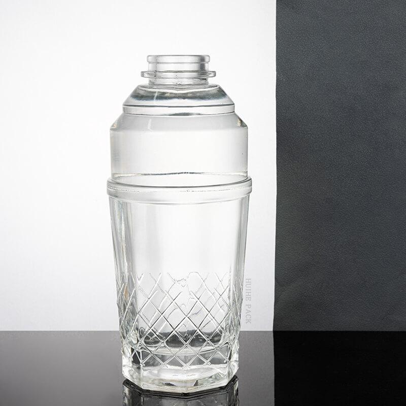 750 ml Cocktail Shaker-förmige Spirituosenflasche mit Diamanttextur unten