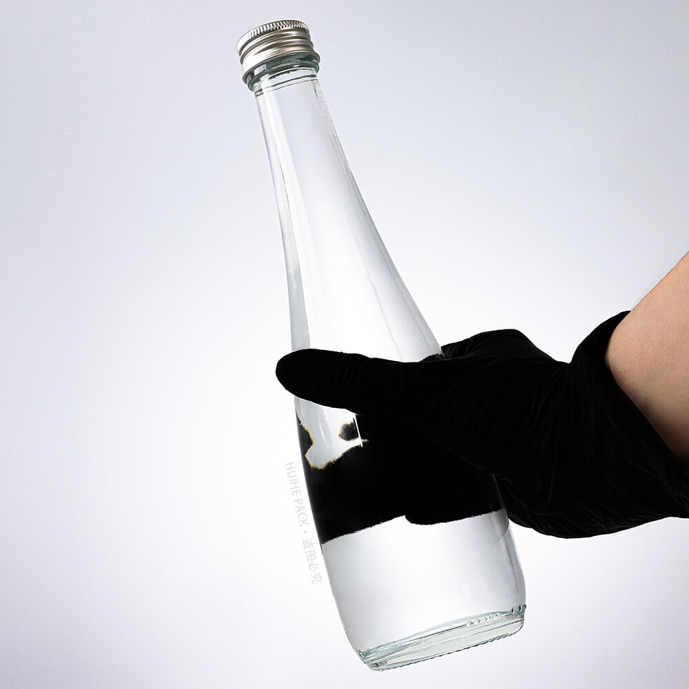 Diese 330-ml-Glaswasserflasche von Huihe zeichnet sich durch eine schlanke, längliche, konische Silhouette aus – sie ist 243,3 mm hoch und hat einen Bodendurchmesser von 68 mm. Sein glatter, kristallklarer Glaskörper strahlt eine minimalistische, moderne Eleganz aus und macht es zu einer idealen Verpackungswahl für Premium-Mineralwassermarken, die Eleganz vermitteln möchten. Es besteht aus hochwertigem Glas und wird zu 100 % einer vollständigen Kontrolle unterzogen: Dieser strenge Prozess gewährleistet eine gleichbleibende Qualitätsstabilität, eliminiert Bruchrisiken während der Logistik und garantiert eine zuverlässige, leckagefreie Versiegelung, um die Produktfrische zu bewahren.