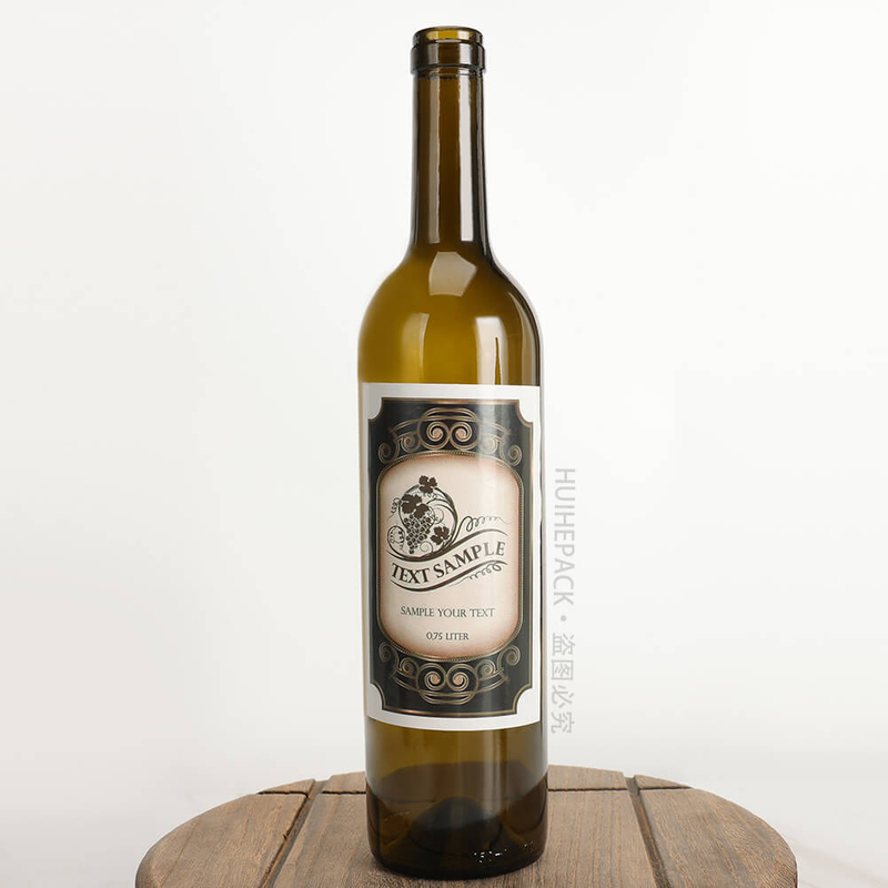 Weinflaschen gibt es in vielen Formen, aber die klassischste ist diese Bordeaux-Flasche. Die Bordeaux-Flasche ist höher, hat glatte Linien und einen dünnen Hals, was ihr ein schlichtes, aber elegantes Aussehen verleiht. Das Etikett der Rotweinflasche enthält viele Informationen über den Wein, wie zum Beispiel die Herkunftsbezeichnung, den Jahrgang, den Namen des Weinguts usw. Das exquisite Etikettendesign verbessert nicht nur die Qualität des Weins, sondern ermöglicht es den Menschen auch, das tiefe Erbe der Weinkultur zu spüren, während sie erlesene Weine genießen. HUIHE PACK bietet maßgeschneiderten Service, wenn Sie individuelle Etiketten für Ihre Marke benötigen Kontaktieren Sie uns!