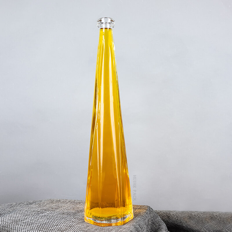 Die insgesamt Silhouette der Flasche ist sowohl elegant als auch zeitgemäß, was es zu einer perfekten Wahl für Marken macht, die ein mutiges Statement abgeben möchten. Wenn Sie auf der Suche nach 'einzigartigen Glasflaschenflaschen ' sind, die auf dem Markt auffallen, passt dieses Design in die Rechnung.