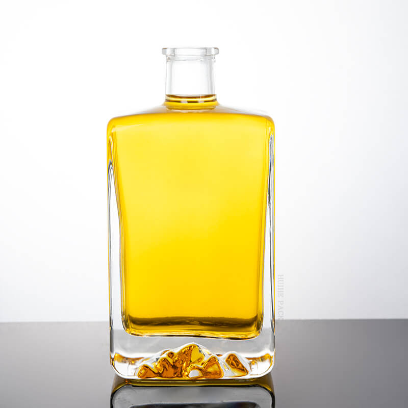 Diese Glasflaschenflasche enthält ein zeitgemäßes und raffiniertes Design, das mit Sicherheit eine Erklärung abgibt. Seine rechteckige Form mit schlanken, abgewinkelten Kanten strahlt die moderne Eleganz aus. Die Basis verfügt über einen komplizierten Berg - wie Design und fügt einen Hauch von Größe und Einzigartigkeit der Natur hinzu. Das klare Glas ermöglicht es, die Farbe des Alkohols im Inneren prominent darzustellen, was die Gesamt -visuelle Anziehungskraft verbessert. Wenn Sie auf der Suche nach 'stilvollen Glasflaschenflaschen' sind, um Ihre Marke zu erhöhen, ist dieses Design eine ausgezeichnete Wahl.