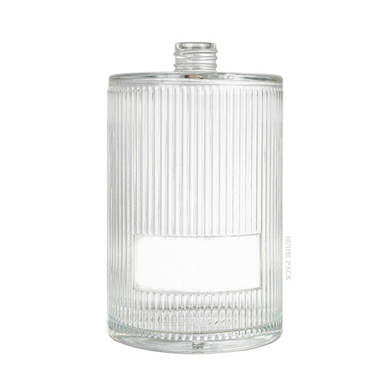 Diese Glasflaschenflasche zeichnet sich durch ein unverwechselbares und strukturiertes Design aus. Das vertikale Rippenmuster, das den Körper bedeckt, fügt nicht nur eine taktile Dimension hinzu, sondern erzeugt auch ein visuell ansprechendes Spiel von Licht und Schatten. Der rechteckige Schnitt in der Mitte bietet eine einzigartige Leinwand zum Branding oder zur Präsentation von Produktdetails. Wenn Sie auf der Suche nach 'einzigartigen Glasflaschenflaschen' sind, um Ihre Marke unvergesslich zu machen, passt dieses Design gut.